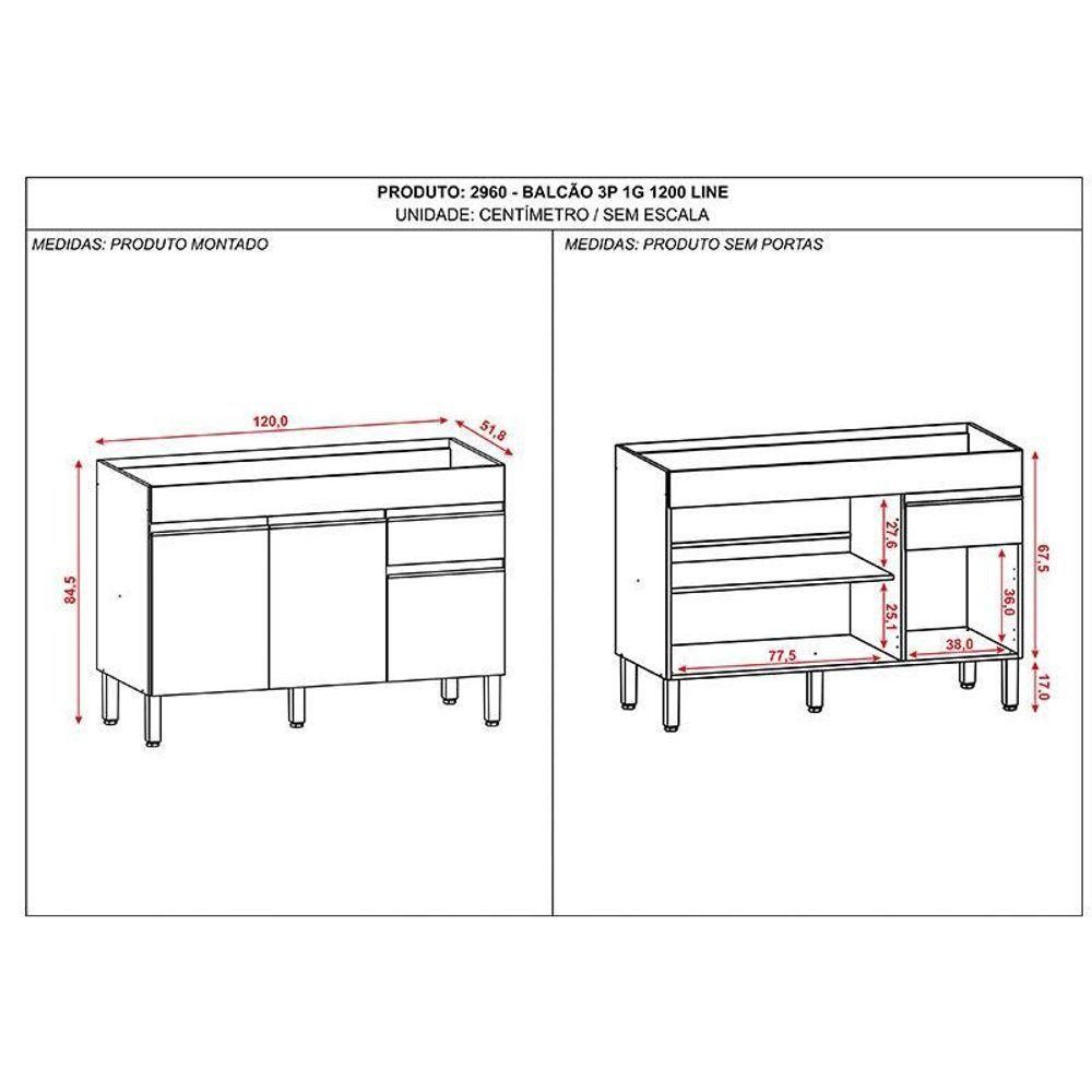 Balcão De Pia Line 120 Cm Gris - Kits Paraná