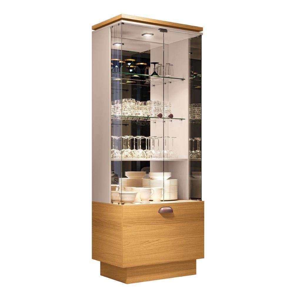 Cristaleira Hb Móveis Aura 2 Portas De Vidro 1 Gaveta Cinamomo-off White