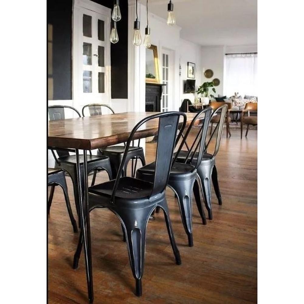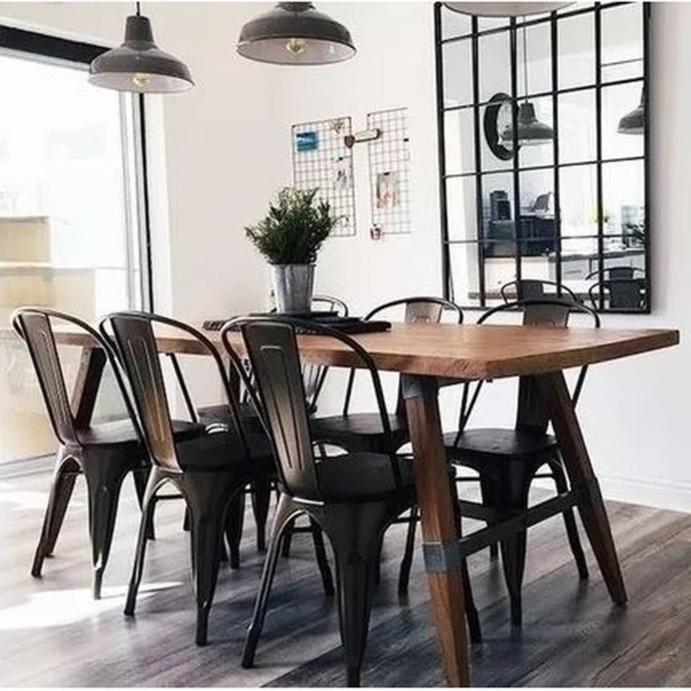 Kit 3 Cadeiras Tolix Iron Design Preto Fosco Aço Industrial Sala Cozinha Jantar Bar