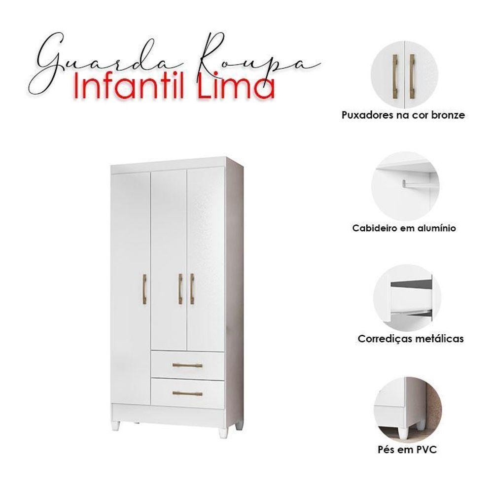 Guarda Roupa Infantil Lima 3 Portas Branco Flex - Moval