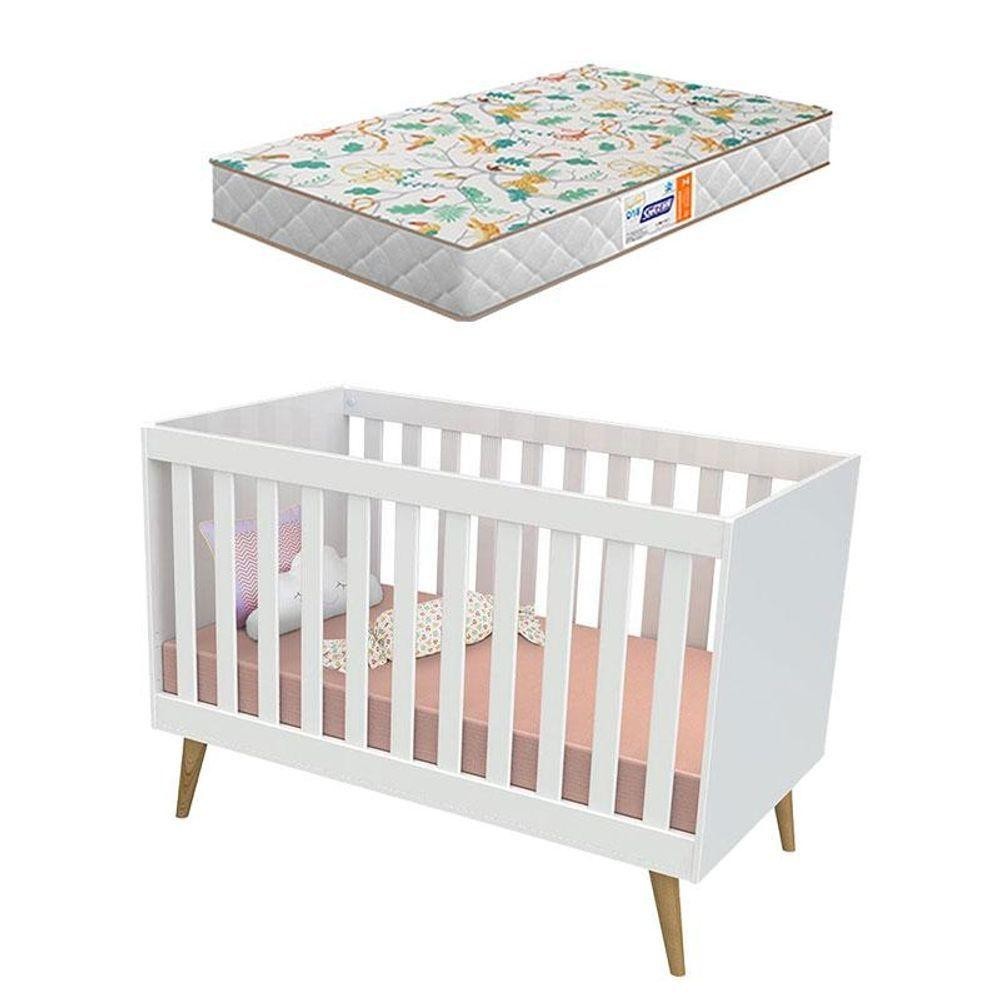 Berço Americano Ludmila Branco Bétula Com Colchão Gazin - Carolina