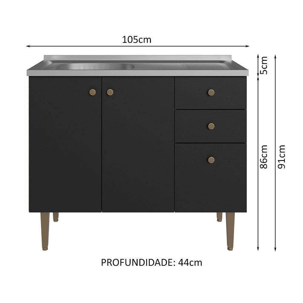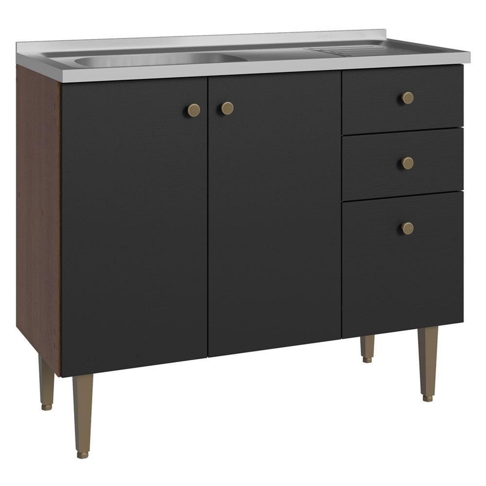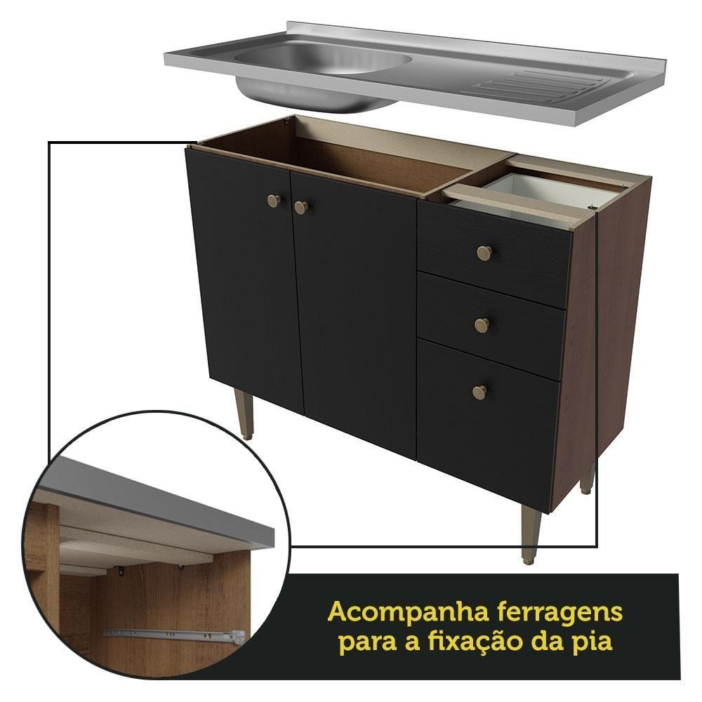 Balcão Gabinete Com Pia 105cm 3 Portas 1 Gaveta Rustic