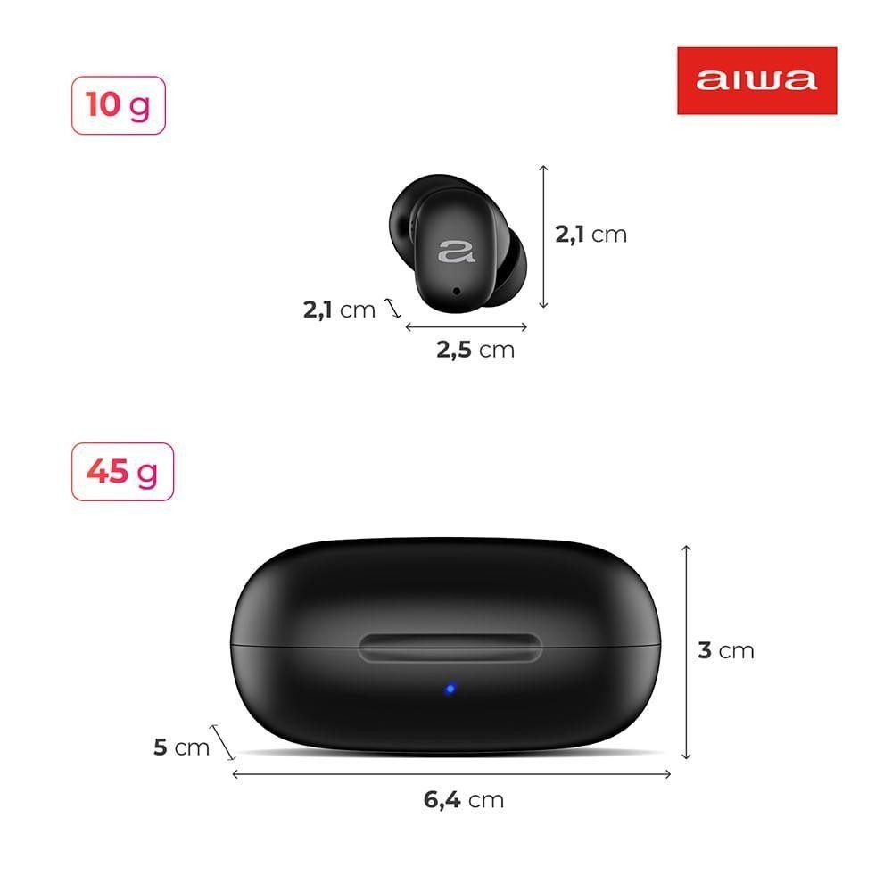 Fone de Ouvido Earbud Aiwa Aws-eb-03-b Bt Ipx5 Anc Modo Ambiente Bivolt