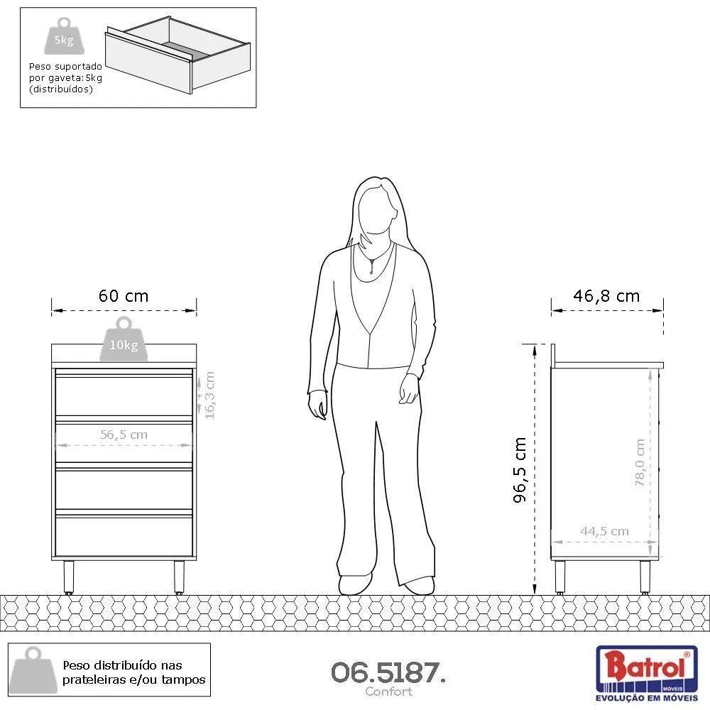Balcão De Cozinha 4 Gavetas Confort Cinamomo Off White Batro Cinamomo Com Off White