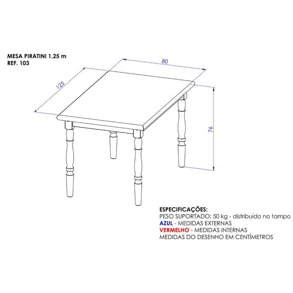 Mesa De Jantar Piratini 125x80 Mel Viero Mel