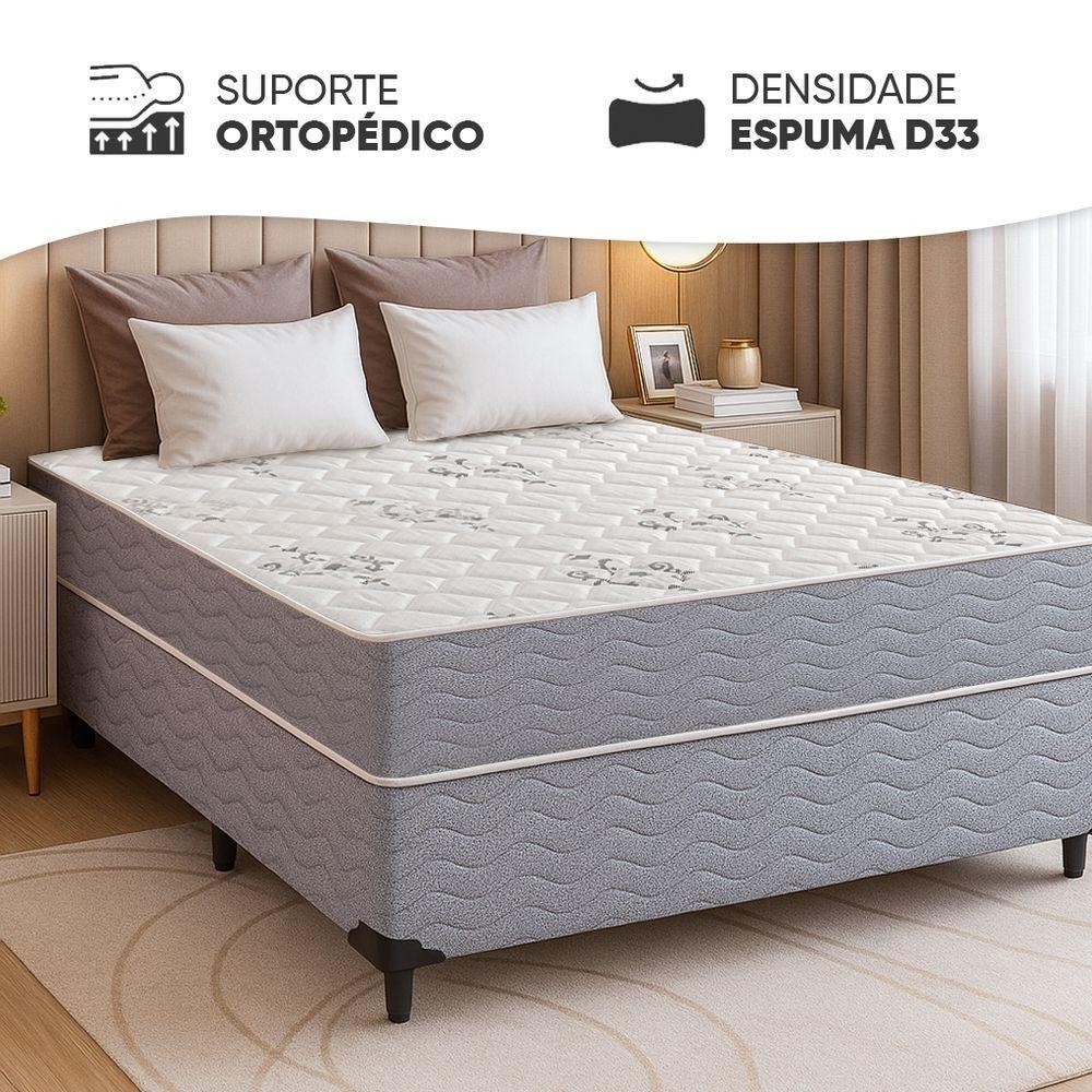 Cama Box Queen + Colchão Espuma Ortopédico D33 Piemonte 158x198x63cm - Maestro Colchões