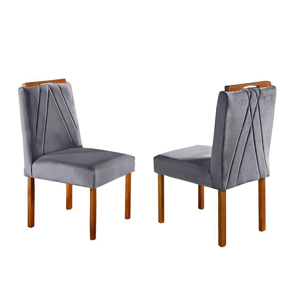 Conjunto Sala De Jantar Mesa Tampo De Vidro 4 Cadeiras Lisboa Mundial Móveis Mel/Cinza Mel/Cinza