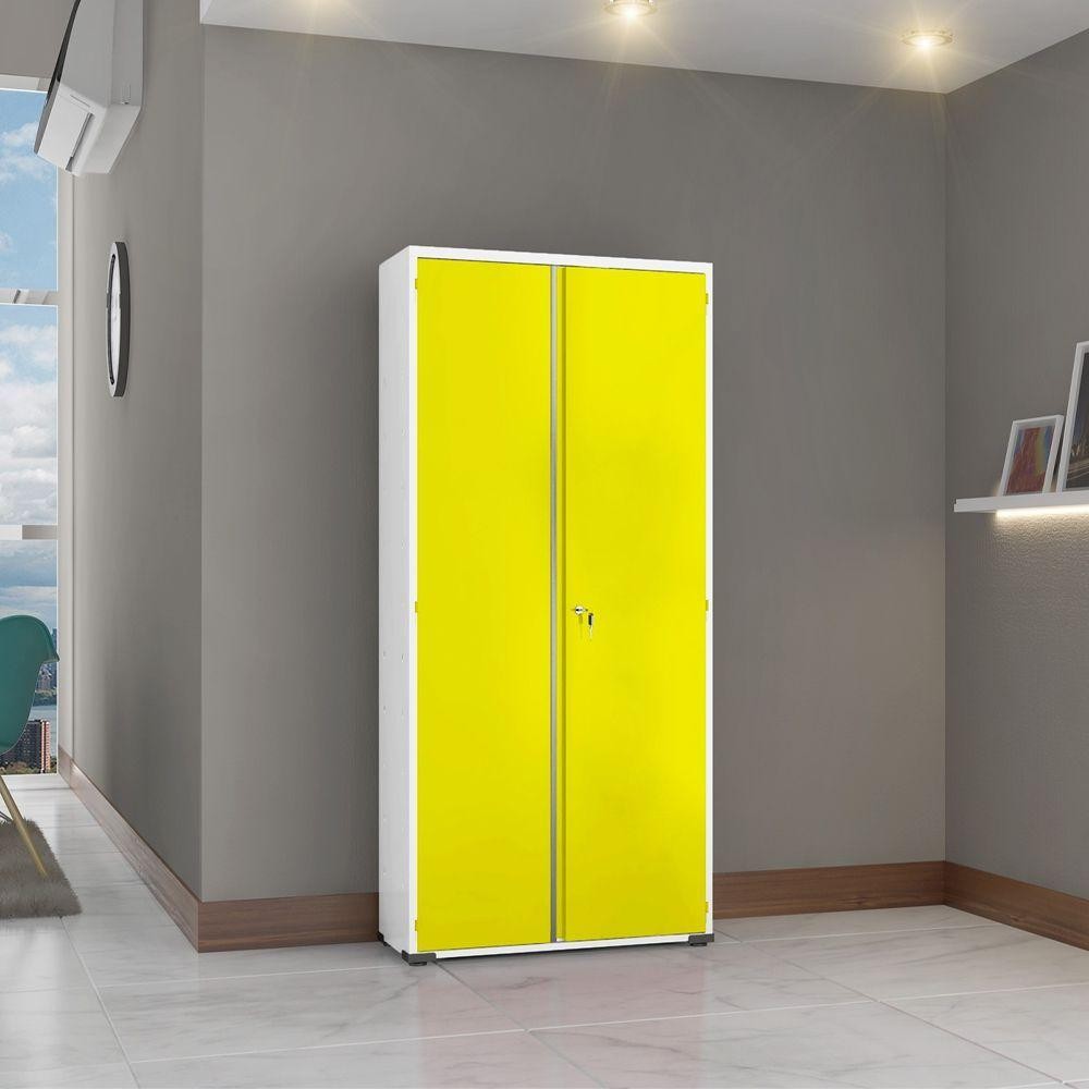 Armário Aço Escritório Fechadura 3 Prateleiras Ea303 Amarelo