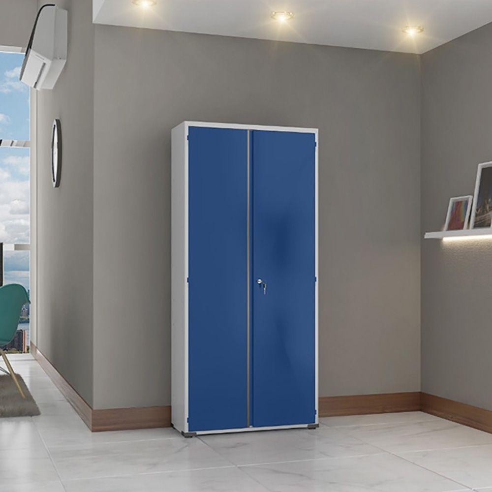 Armário Aço Escritório Fechadura 3 Prateleiras Azul