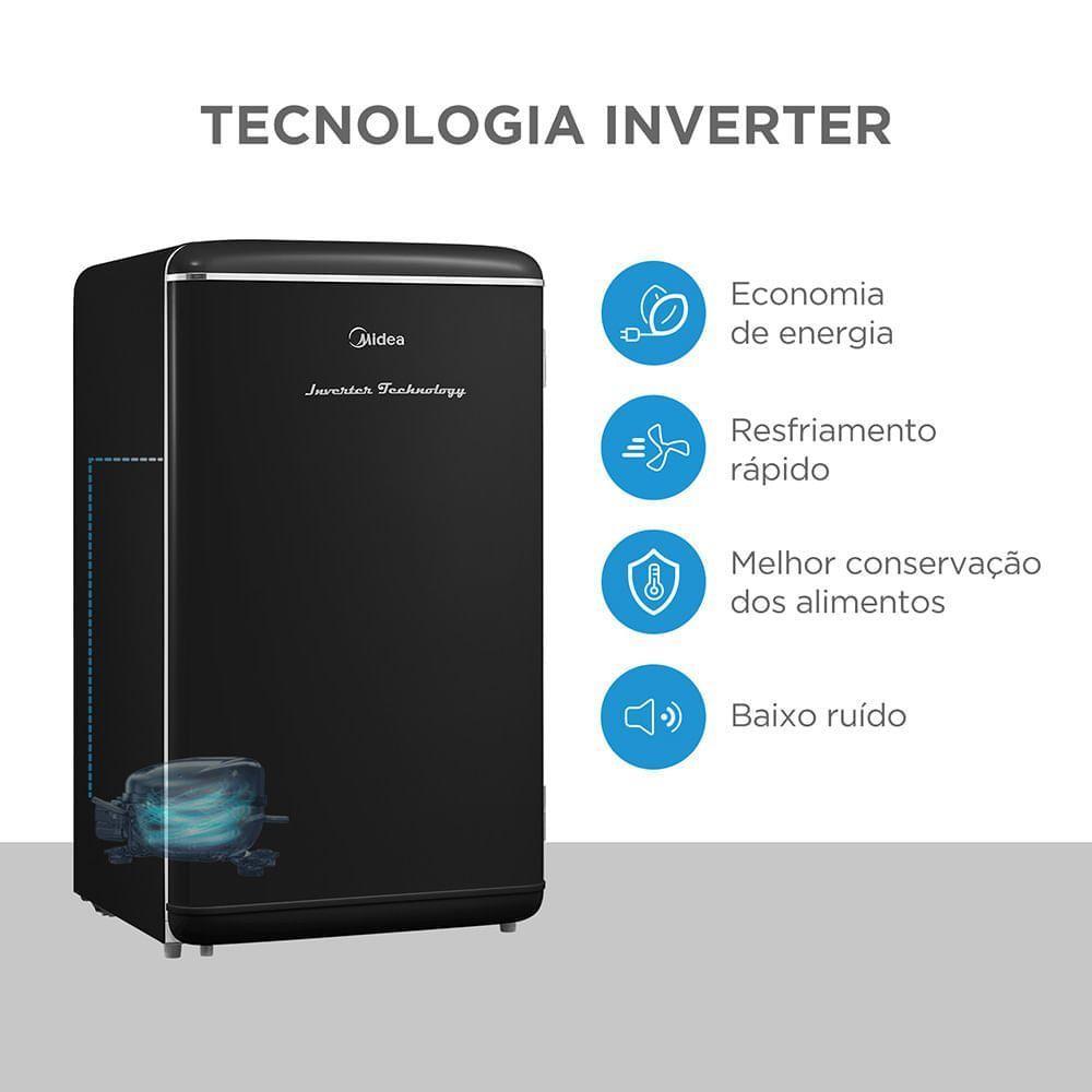 Frigobar Retrô Preto 93L Inverter Bivolt Midea MDRD142RTD303 Bivolt