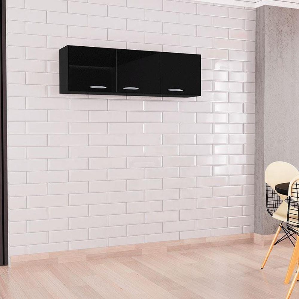 Armário Aéreo Para Cozinha 3 Portas 120 Cm Preto - Poquema