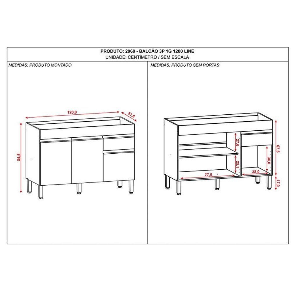 Balcão De Pia Line 120 Cm Supremo - Kits Paraná