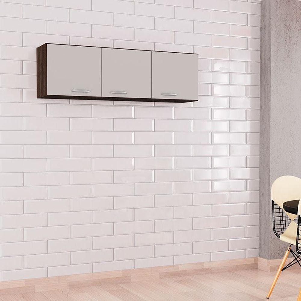 Armário Aéreo Para Cozinha 3 Portas 120 Cm Chocolate Off White- Poquema