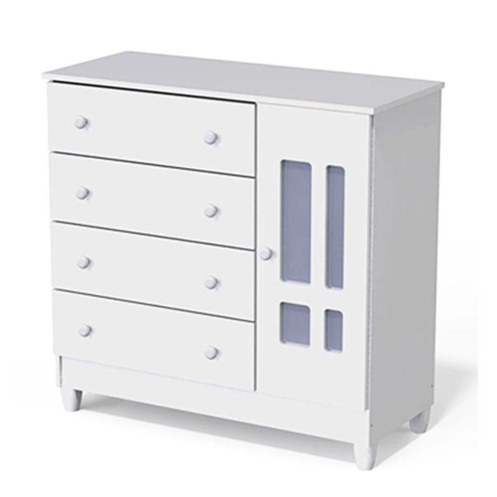 Cômoda E Guarda Roupa Infantil Ariel 4 Portas Branco Brilho - Carolina