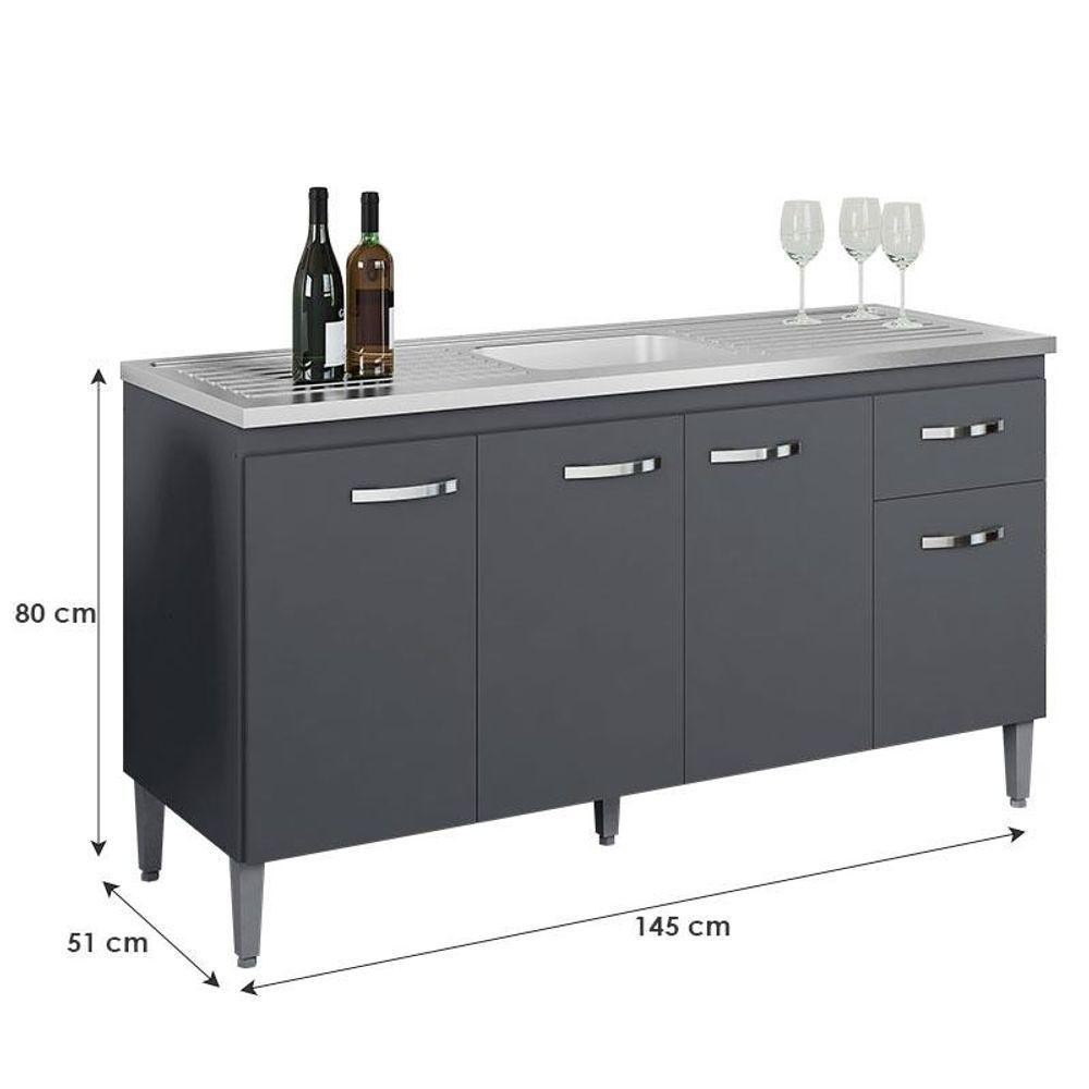Balcão De Pia Gabriela 150 Cm Cinza Fosco - Ajl