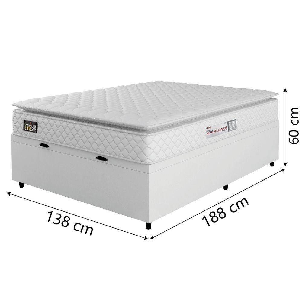 Cama Box Baú Casal Colchão Espuma D33 Pillow Top New Millenium 138x188x60cm Branco Hellen