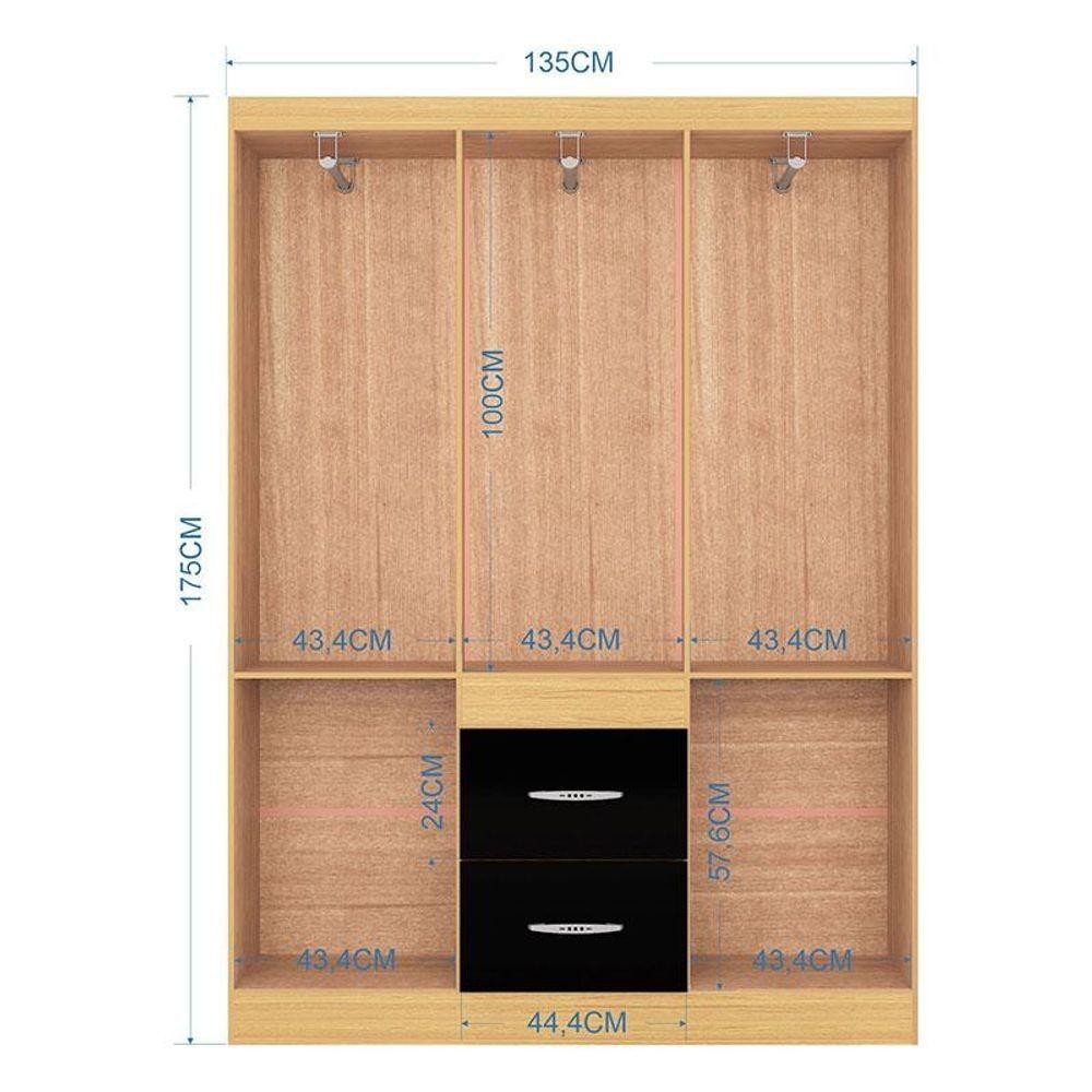 Guarda Roupa Casal Ambiente Milão 6 Portas Damasco Preto - Poquema