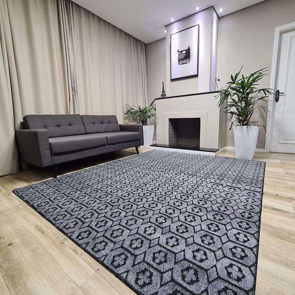 Tapete Carpete Sala Quarto Elegante Geométrico 1,50 X 2,00 Titulo Cor Cinza