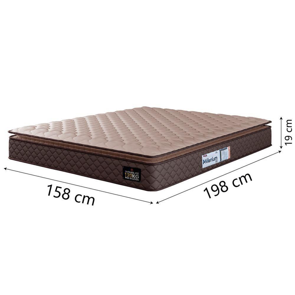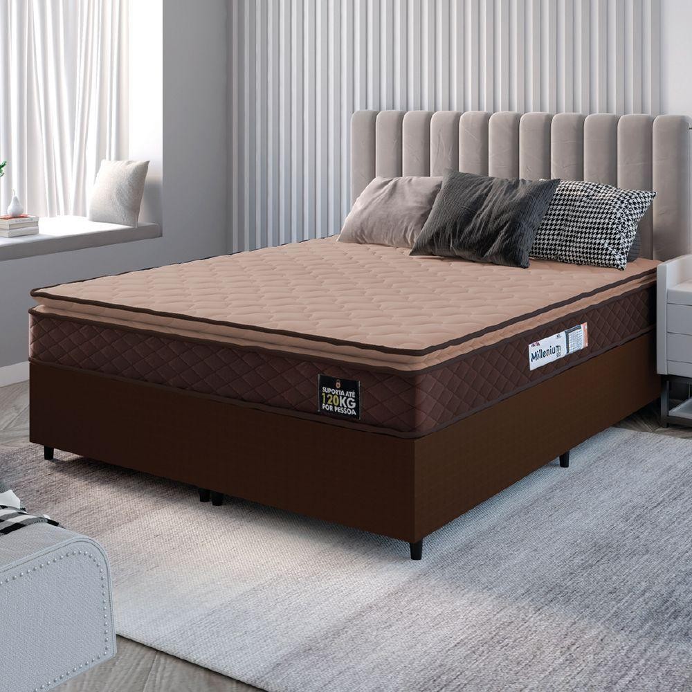 Cama Box Casal Queen Colchão Espuma D33 Pillow Top Millenium 158x198x57cm Suede Marrom Hellen