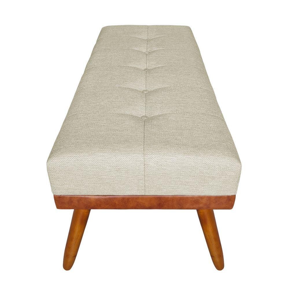 Banco Estofado Roma 120cm Courissimo Nozes-linho Bege - Inova Decorações