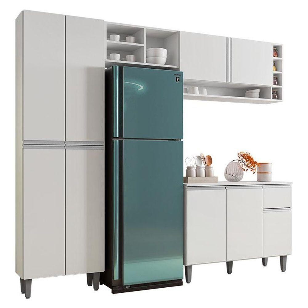 Cozinha Ambiente Vanessa E Balcão De Pia Tatiane 120 Cm Branco Brilho - Ajl