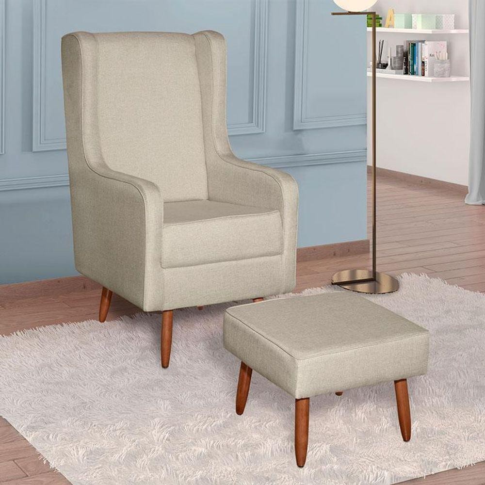 Poltrona Amamentação Aquila Com Puff Linho Bege Pés Palito - Fratello