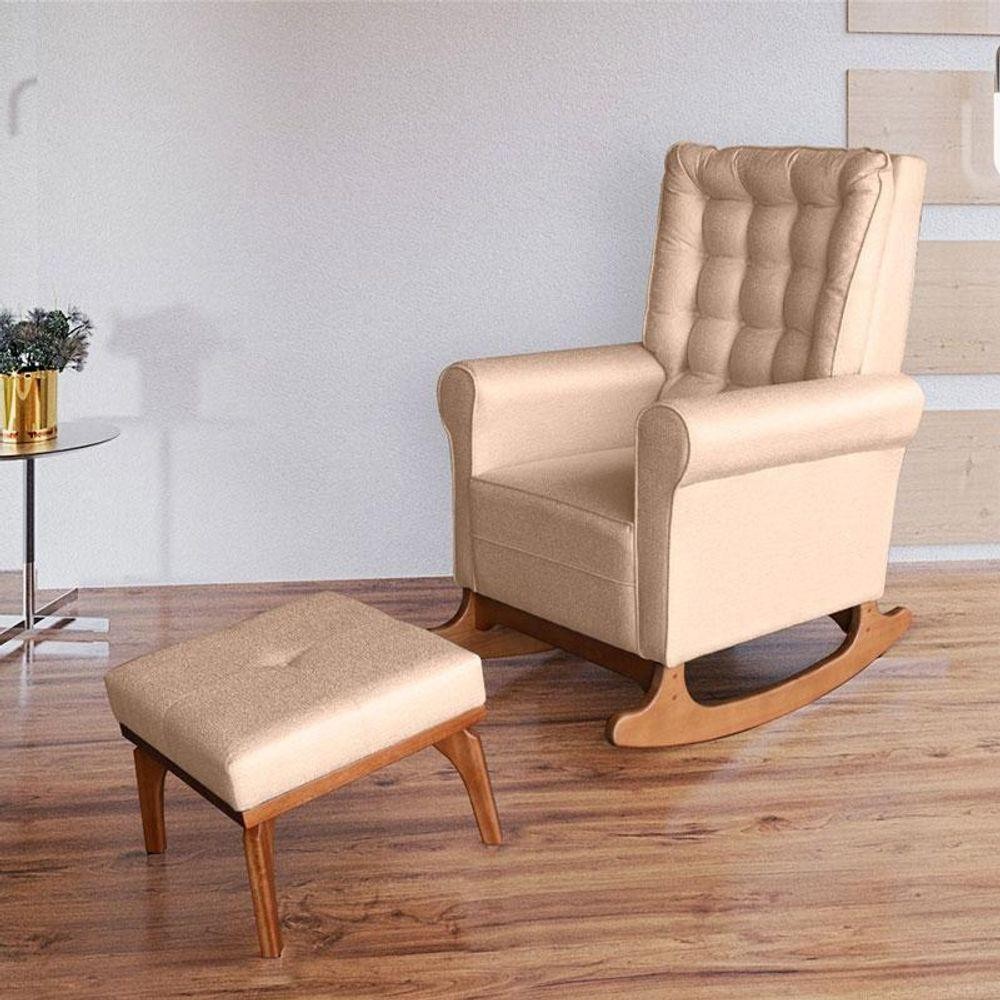 Poltrona De Amamentação Com Balanço E Puff Paris Linho Bege - Ideal