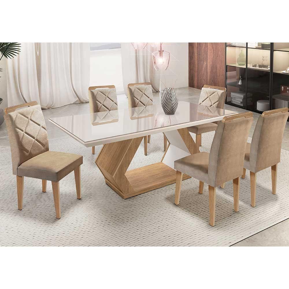 Mesa Alvorada 180 Tp Mdf Vidro Canto Reto 6 Cadeiras