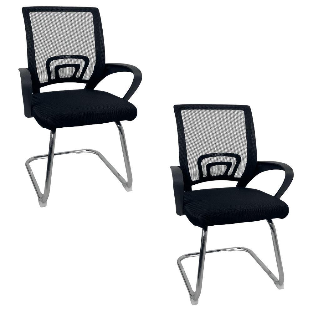 Kit 2 Cadeiras De Escritório Begonia Oficial Tela Mesh Fixa Preto