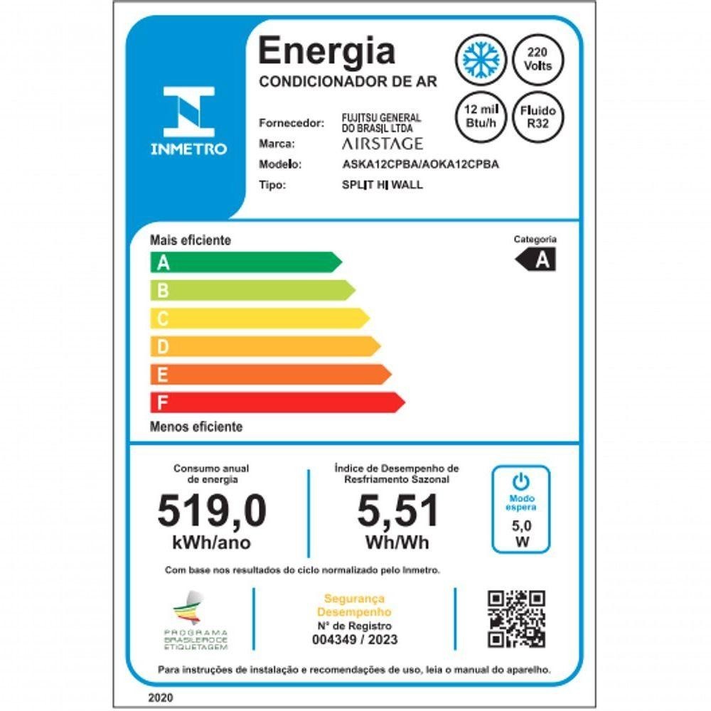 Ar Condicionado Split HiWall Fujitsu 12.000BTUS Frio 220v