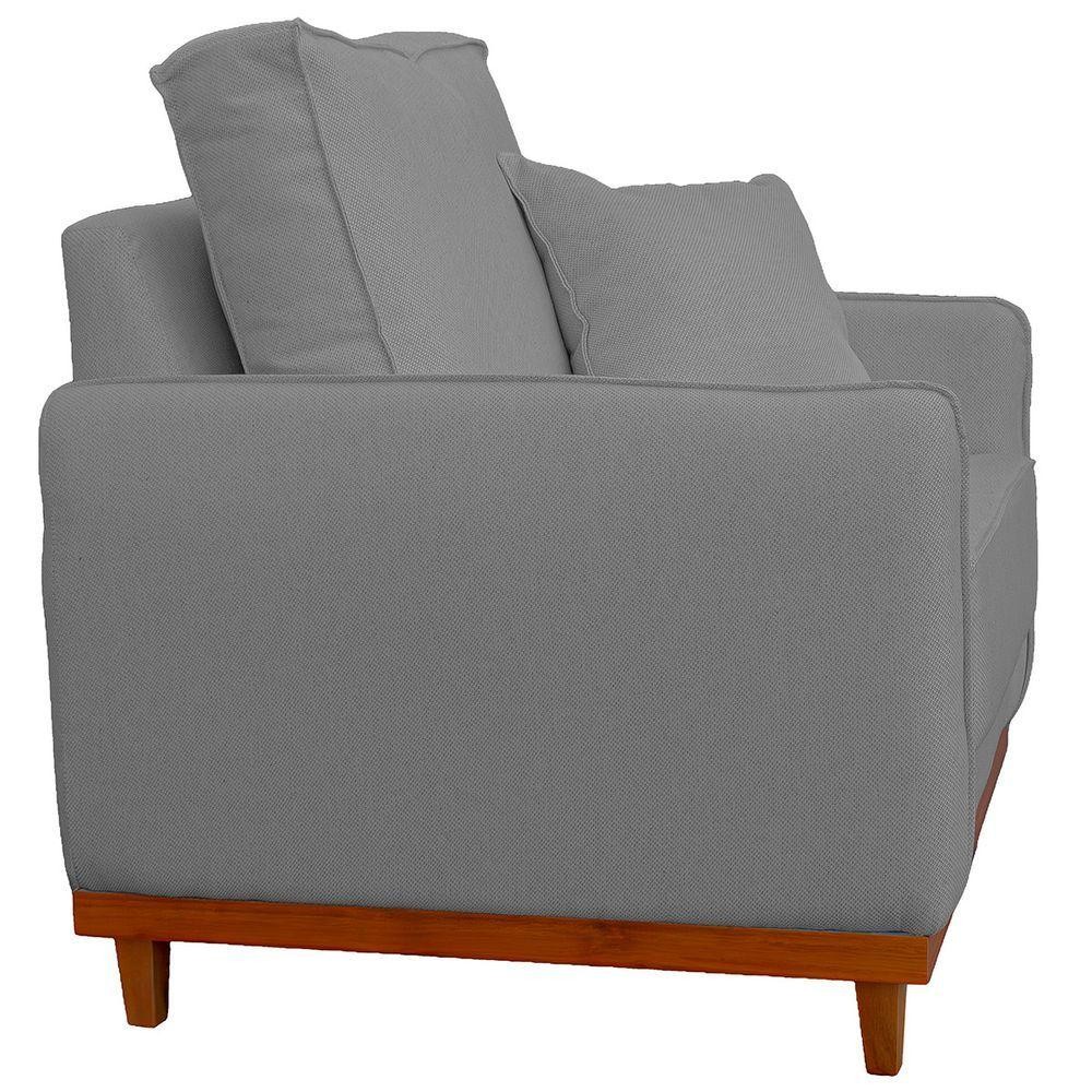 Poltrona Sofa Sena Base De Madeira Luxo Conforto Para Hotel E Sala Linho Cinza