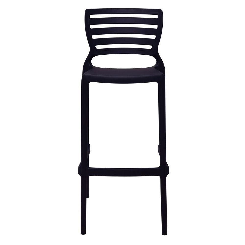 Banqueta Para Bar Alta Tramontina Sofia Preta Em Polipropileno Empilhável