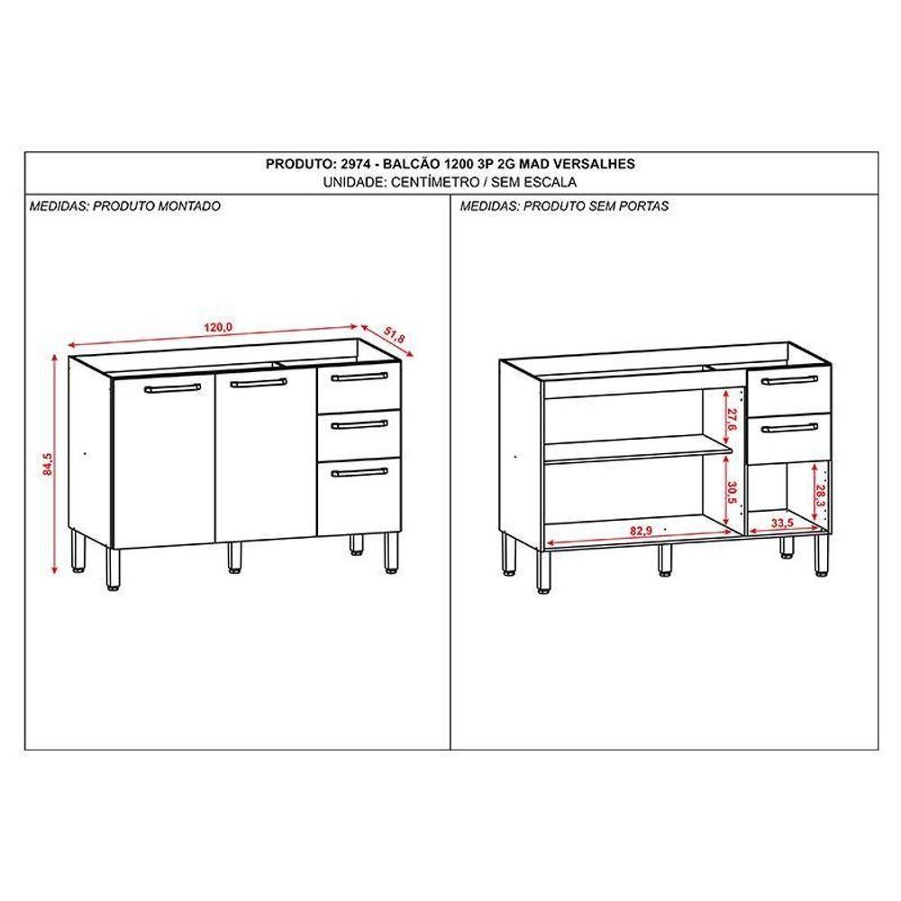 Balcão De Pia Mad Versalhes 120 Cm Freijó Gris - Kits Paraná