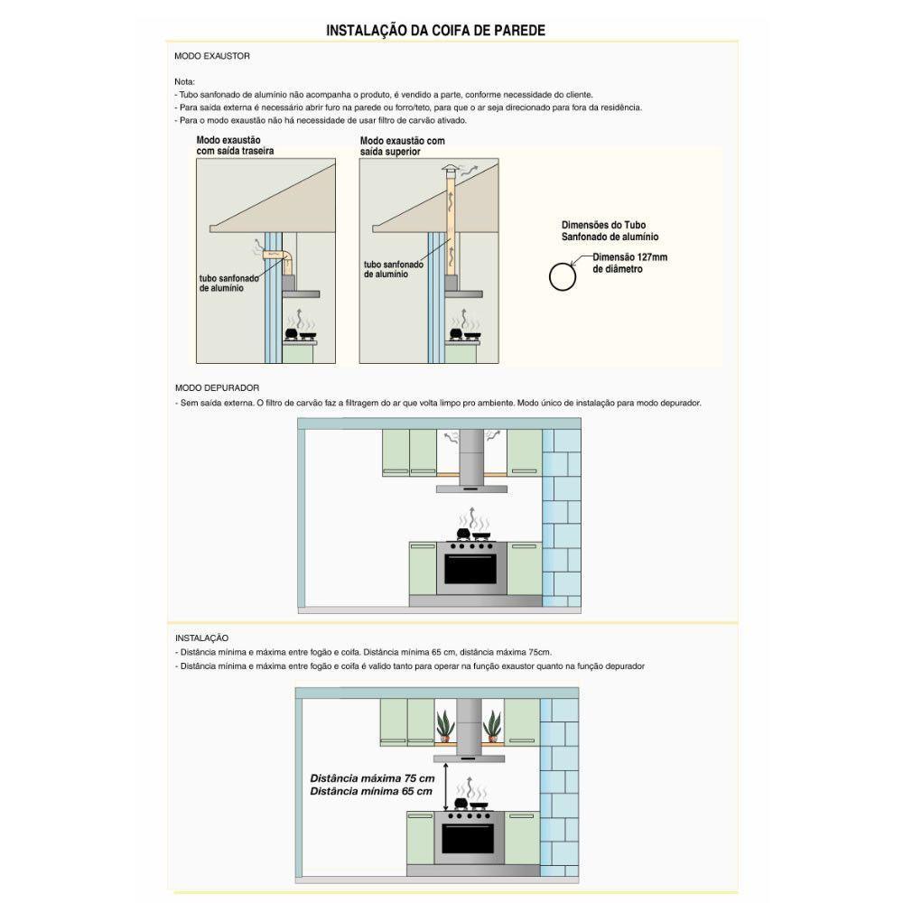 Coifa De Parede 75cm Vidro Curvo Slim Fogatti Branco 220V