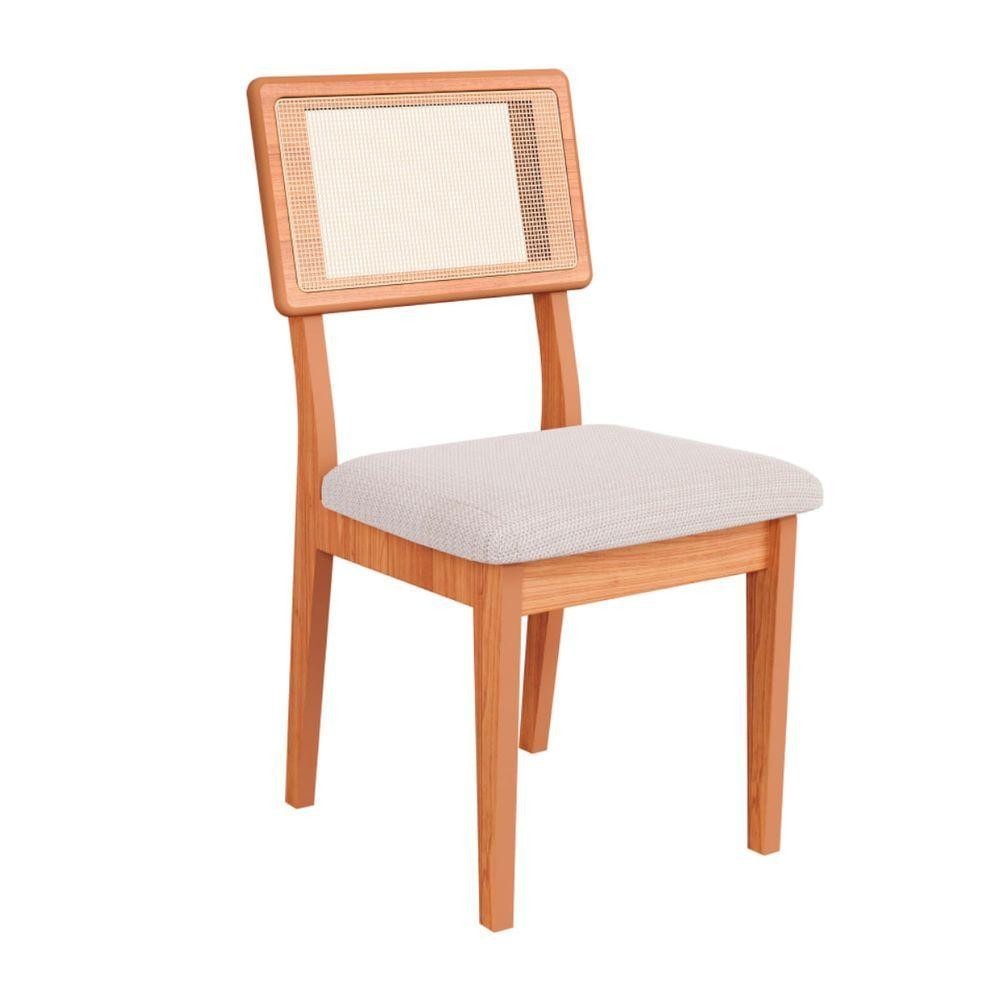 Cadeira em Mdf Freijó Assento Estofado Bege Rústico e Encosto com Tela Dalla Costa
