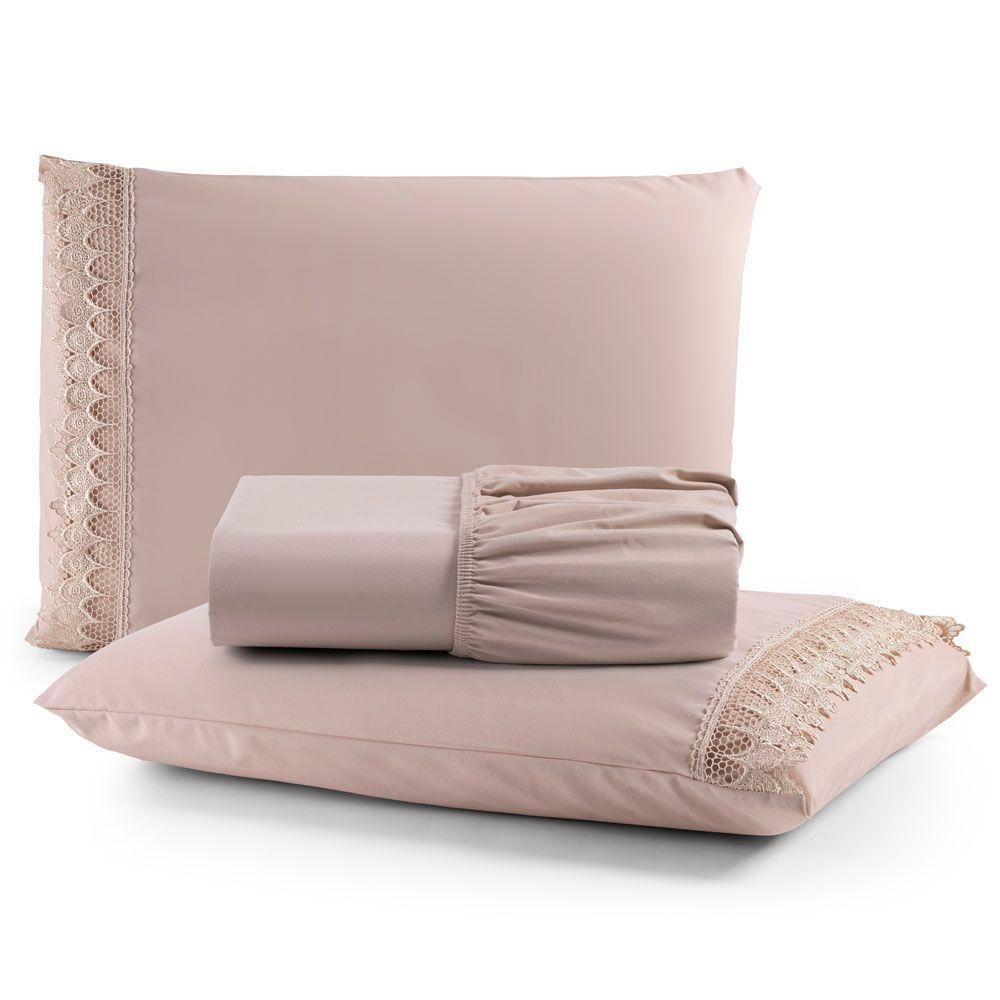 Jogo Cama Lençol Haia Casal Padrão Percal 200 Fios 100% Algodão Guipir Bordado Inglês 3 Peças - Avelã