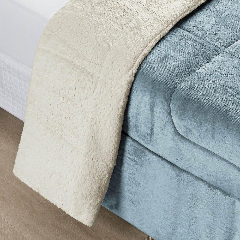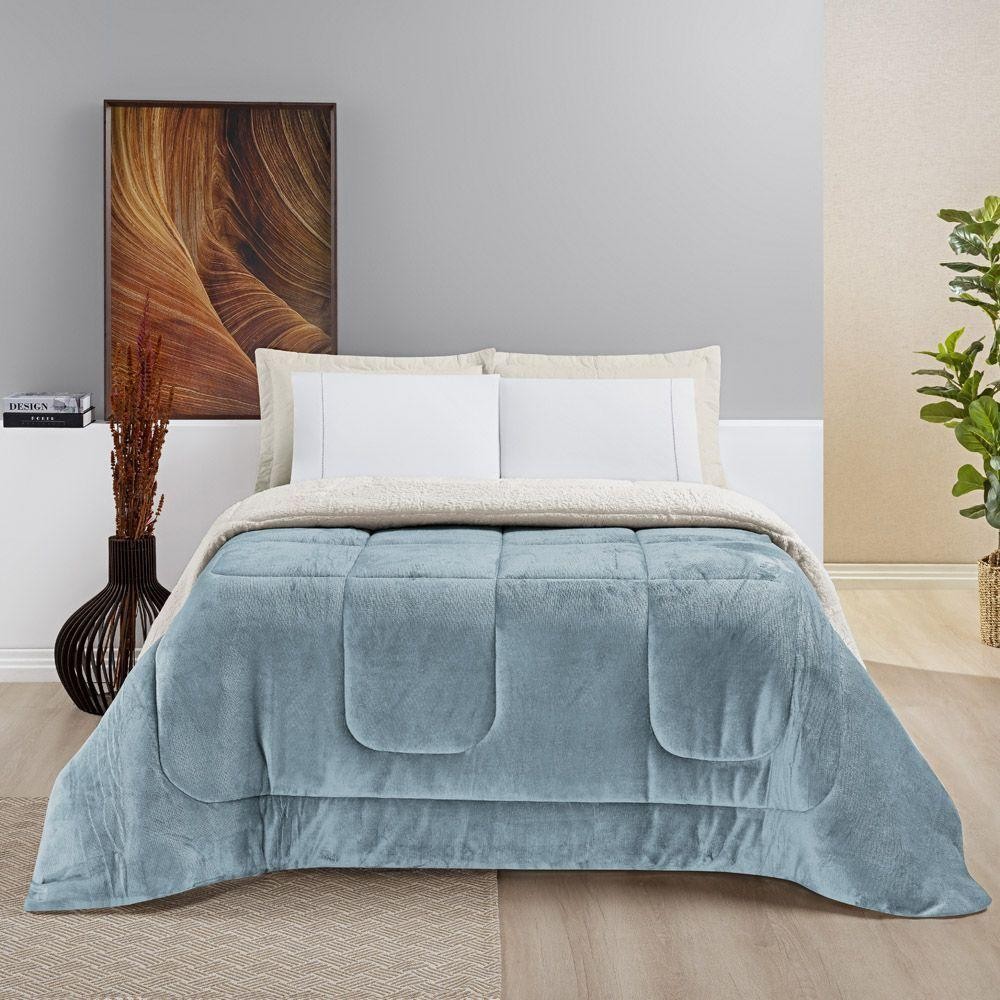 Coberdrom Casa Scarpa Apollo Queen Sherpa Pele De Carneiro + Manta Flannel - Azul Quartzo