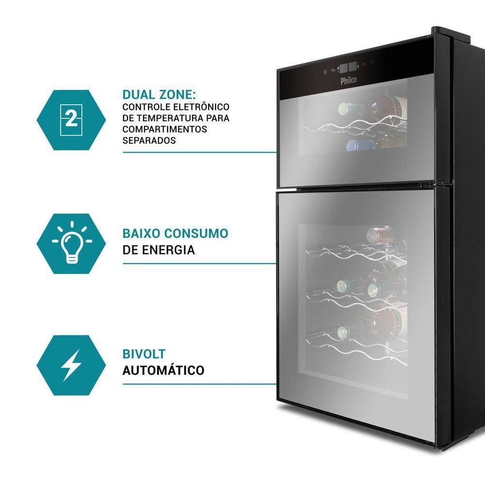 Adega Philco 69L PAD24DZ Display Digital 24 Garrafas Bivolt