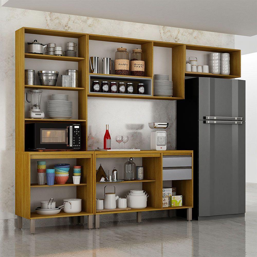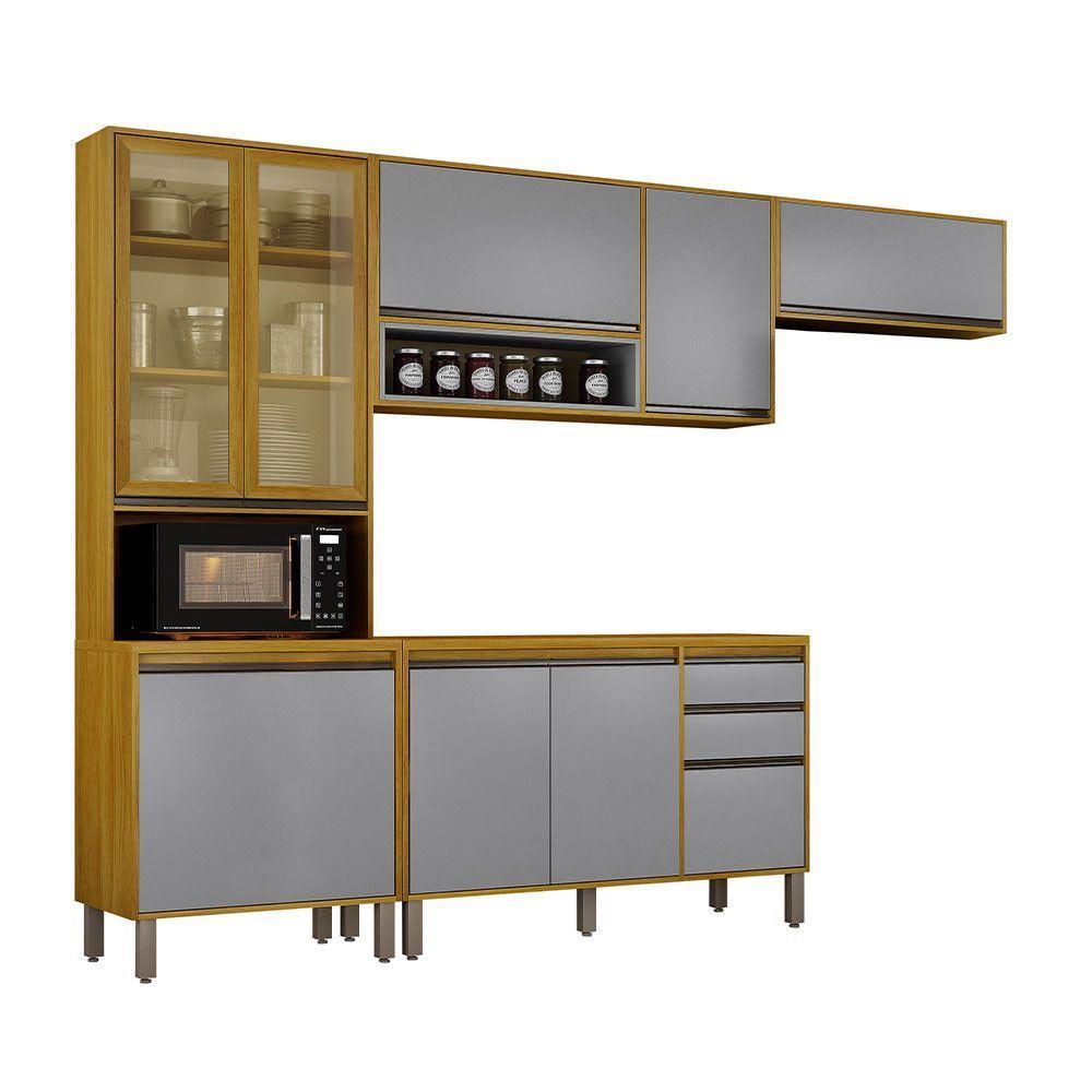 Cozinha Completa Nala Cristaleira 4 Pçs 9 Portas Mobilihouse Cinamomo/cinza Acetinado