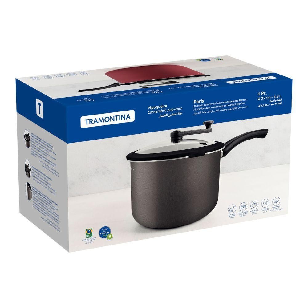 Pipoqueira Tramontina Paris 22 Cm 4,8 Litros Grafite Em Alumínio Starflon Max