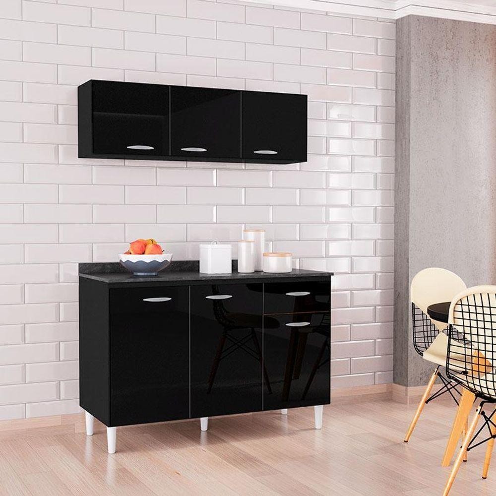Balcão De Cozinha Com Tampo E Armário Aéreo 120 Cm Preto - Poquema