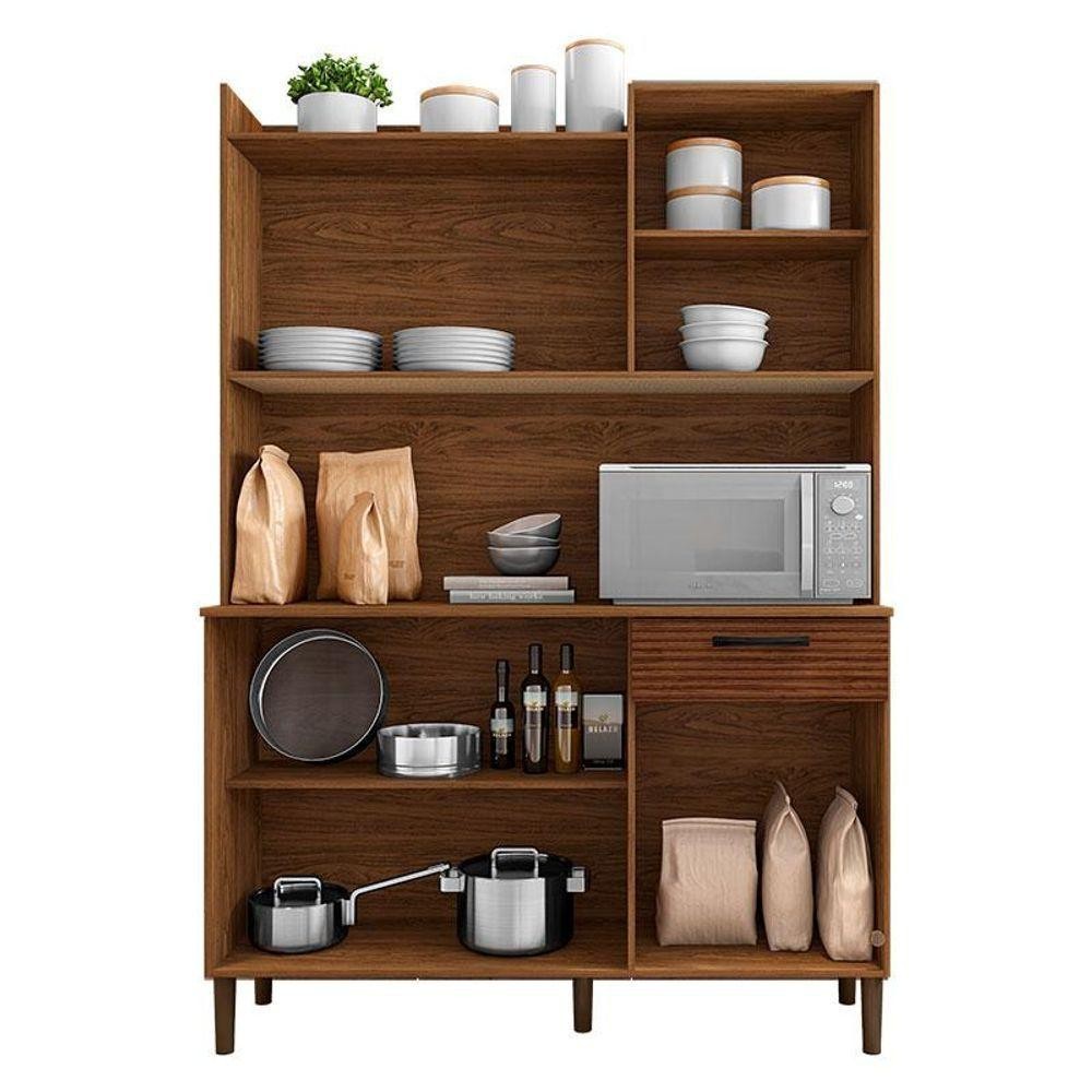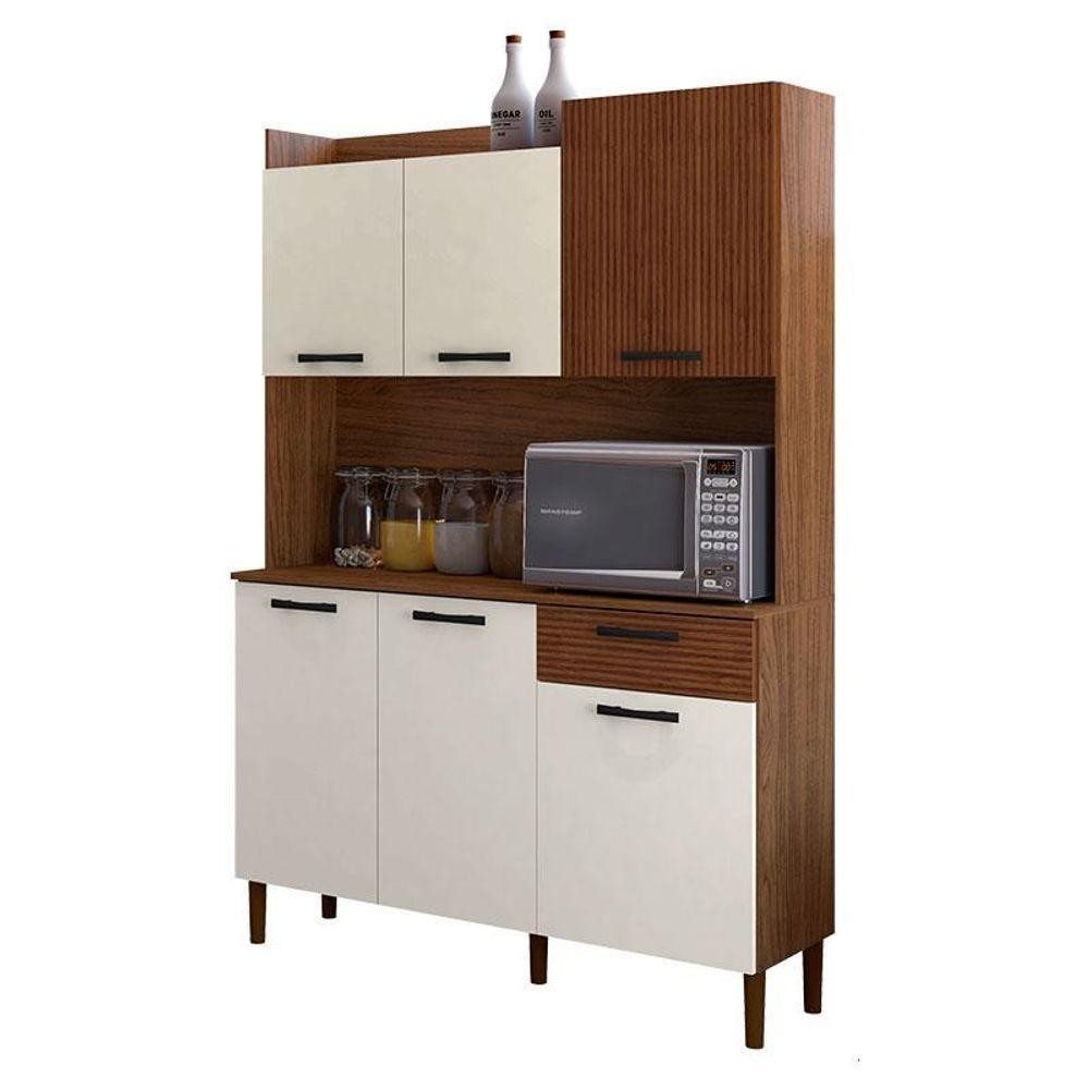 Kit Cozinha Ambiente Gênova 6 Portas Nogueira Off White Ripado - Kits Paraná