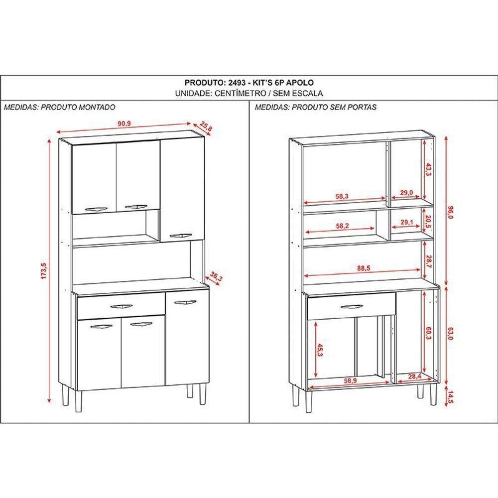 Kit Cozinha 6 Portas Ambiente Apolo Freijó Gris - Kits Paraná