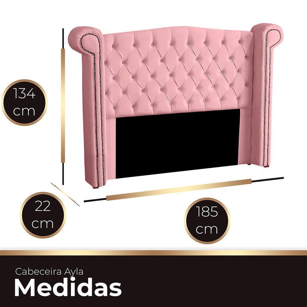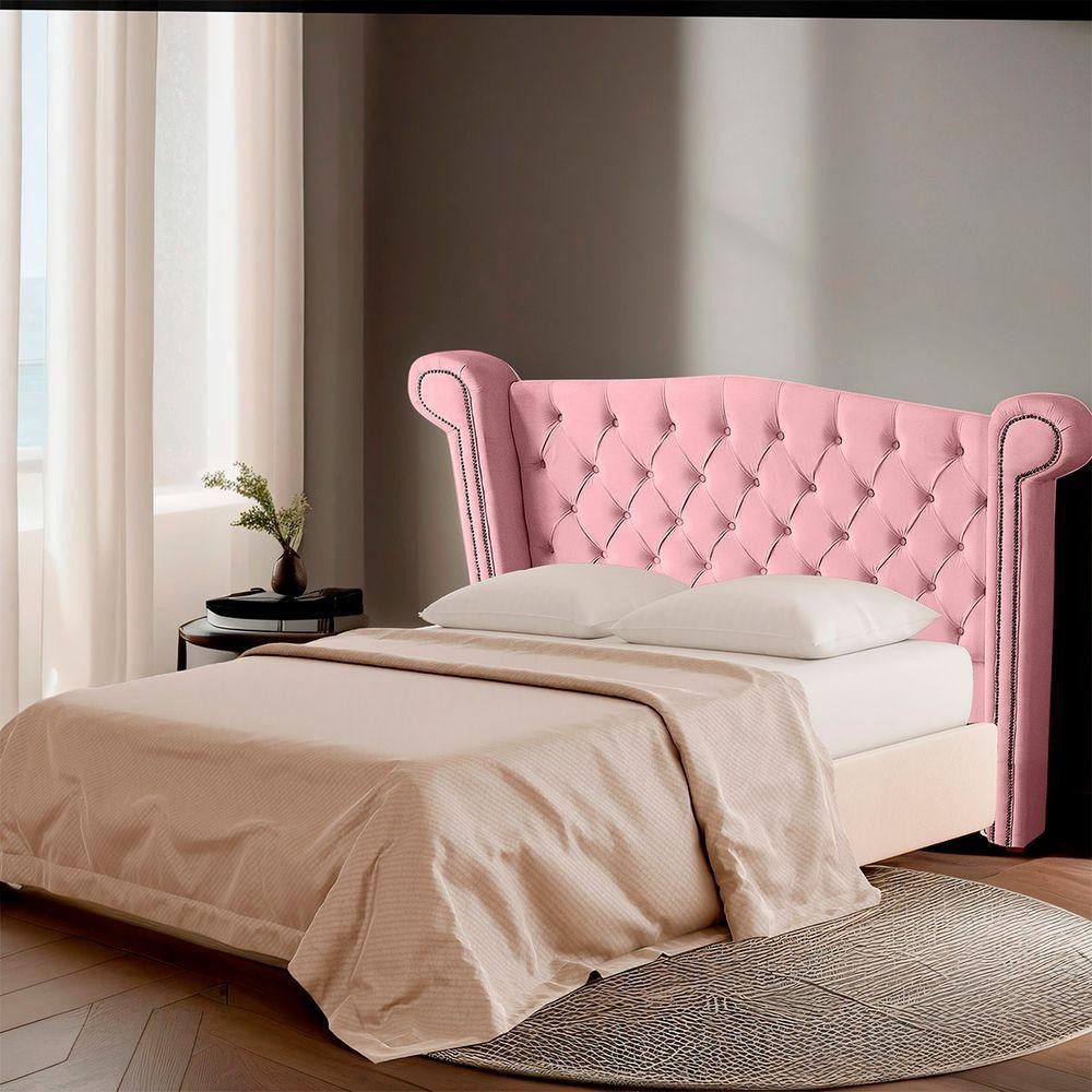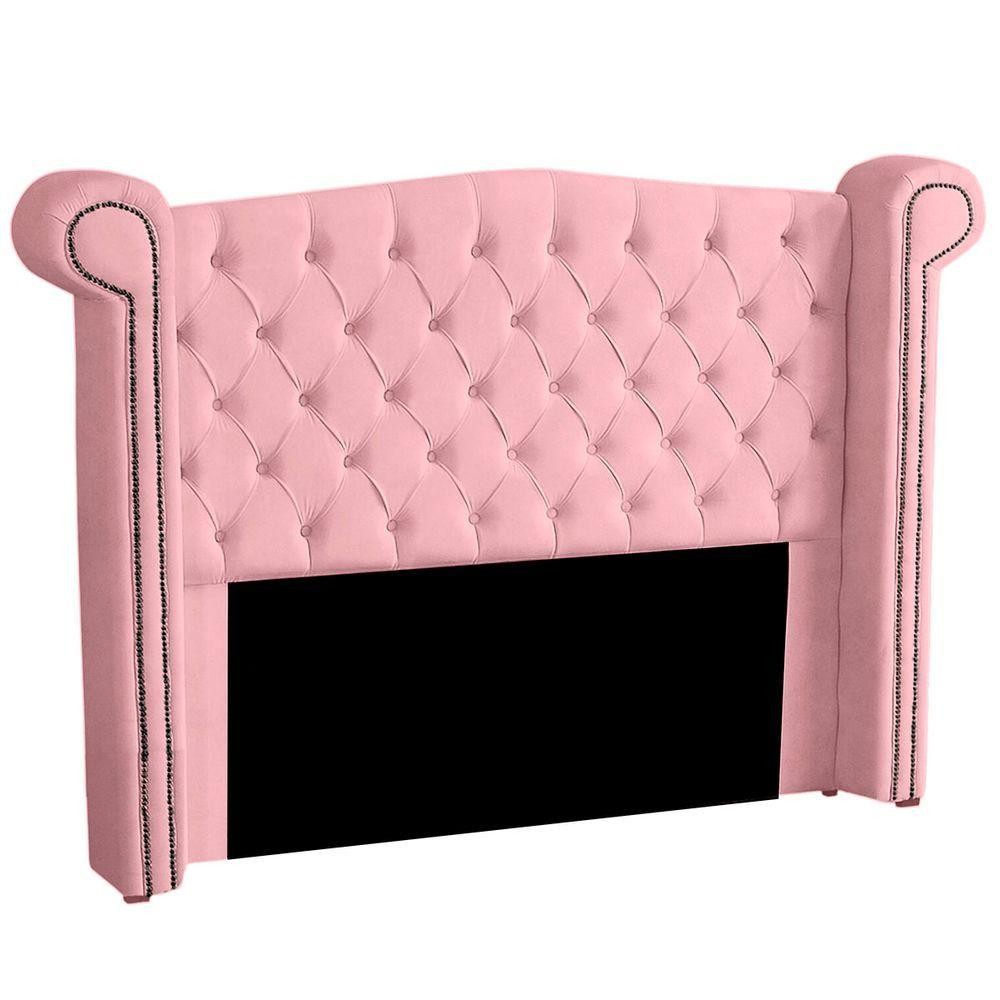 Cabeceira Casal Queen Size Estofada Para Cama Box Ayla Veludo Cor Rosa Bebe
