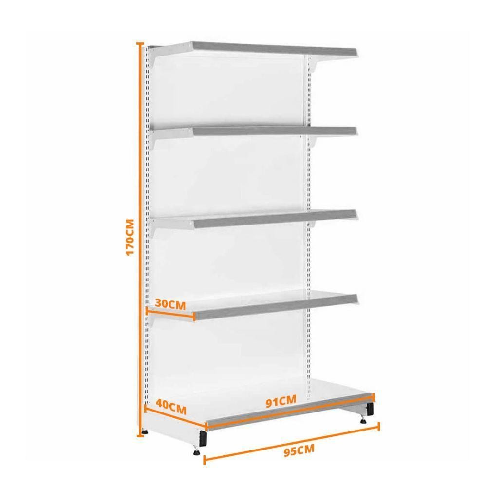 Gôndola Prateleira Preta 5 Níveis 40x30 New Plus 1,70 Parede Inicial Pe Vermelho - Sa Gôndolas