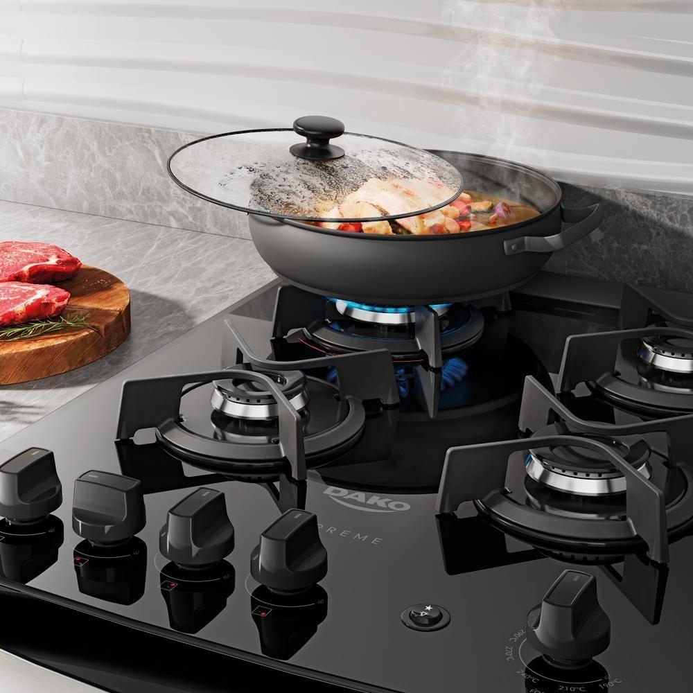 Fogão 4 Bocas De Embutir Dako Supreme Mesa De Vidro Preto Bivolt