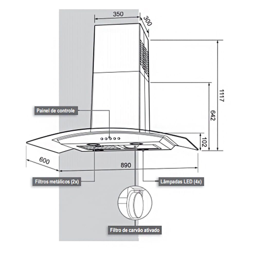 Coifa De Ilha Cadence Gourmet Vidro Curvo 90cm 110V
