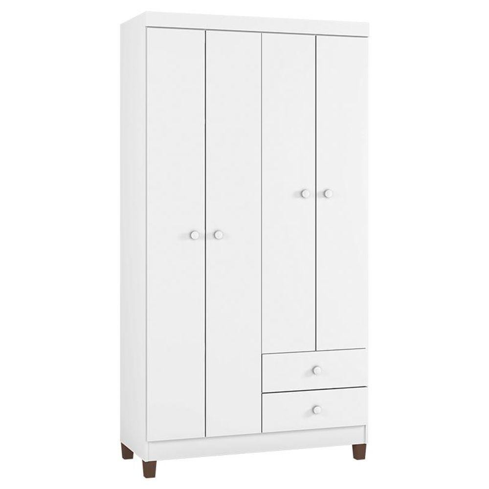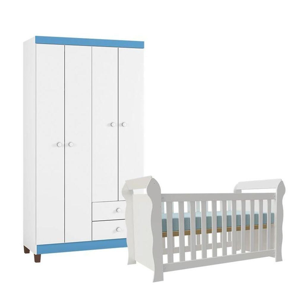 Berço Americano Lara E Guarda Roupa Ternura Baby 4 Portas Branco Brilho - Incorplac