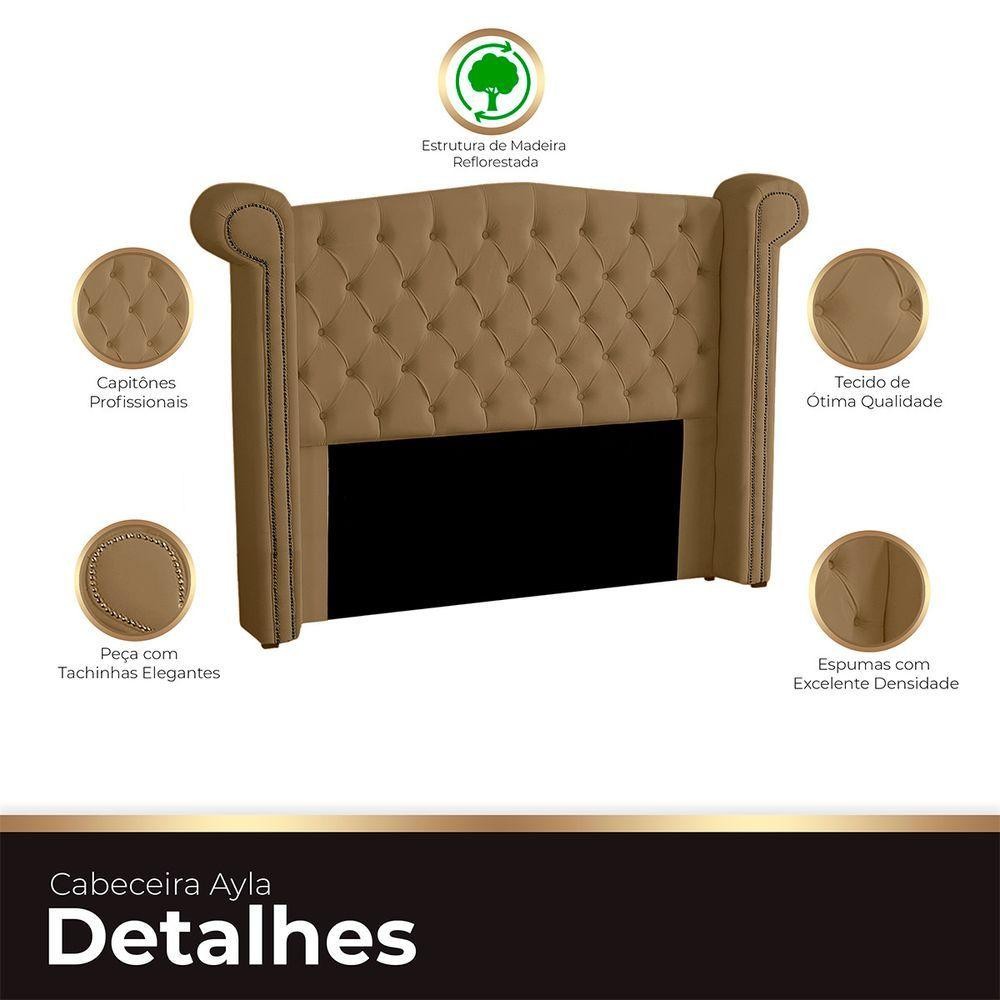 Cabeceira Casal King Size Estofada Para Cama Box Ayla Veludo Cor Capuccino