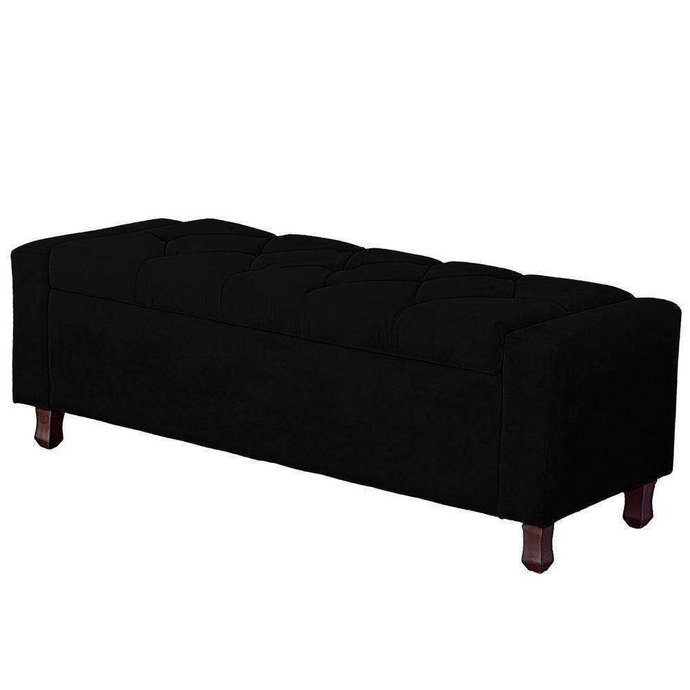 Calçadeira Baú Casal King Size Estofada Valencia Veludo Cor Preto